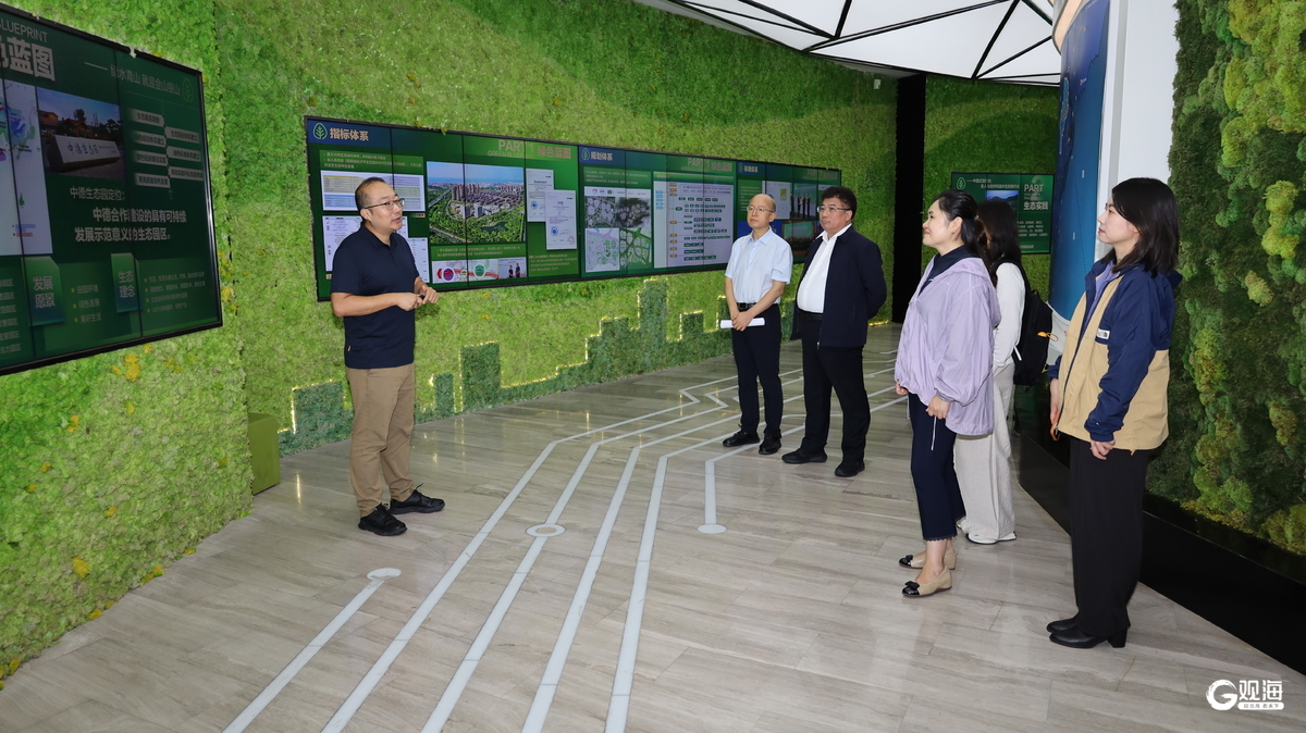 在中德生態(tài)園,調(diào)研組參觀了體驗運營中心,觀看《自然會發(fā)生》《中德生態(tài)園十周年》等生態(tài)文明主題宣傳片,并通過實景沙盤和互動設(shè)施深入了解園區(qū)在低碳城市建設(shè)、綠色規(guī)劃展示、智慧運營管理等領(lǐng)域的實踐成果。中德生態(tài)園生態(tài)規(guī)劃建設(shè)部負責(zé)同志系統(tǒng)匯報了園區(qū)生態(tài)文明宣教總體情況,重點介紹了以“管委會企業(yè)社會公眾”多元協(xié)同的宣教體系、專業(yè)化場館建設(shè)、國際交流平臺搭建以及特色宣傳活動開展情況。