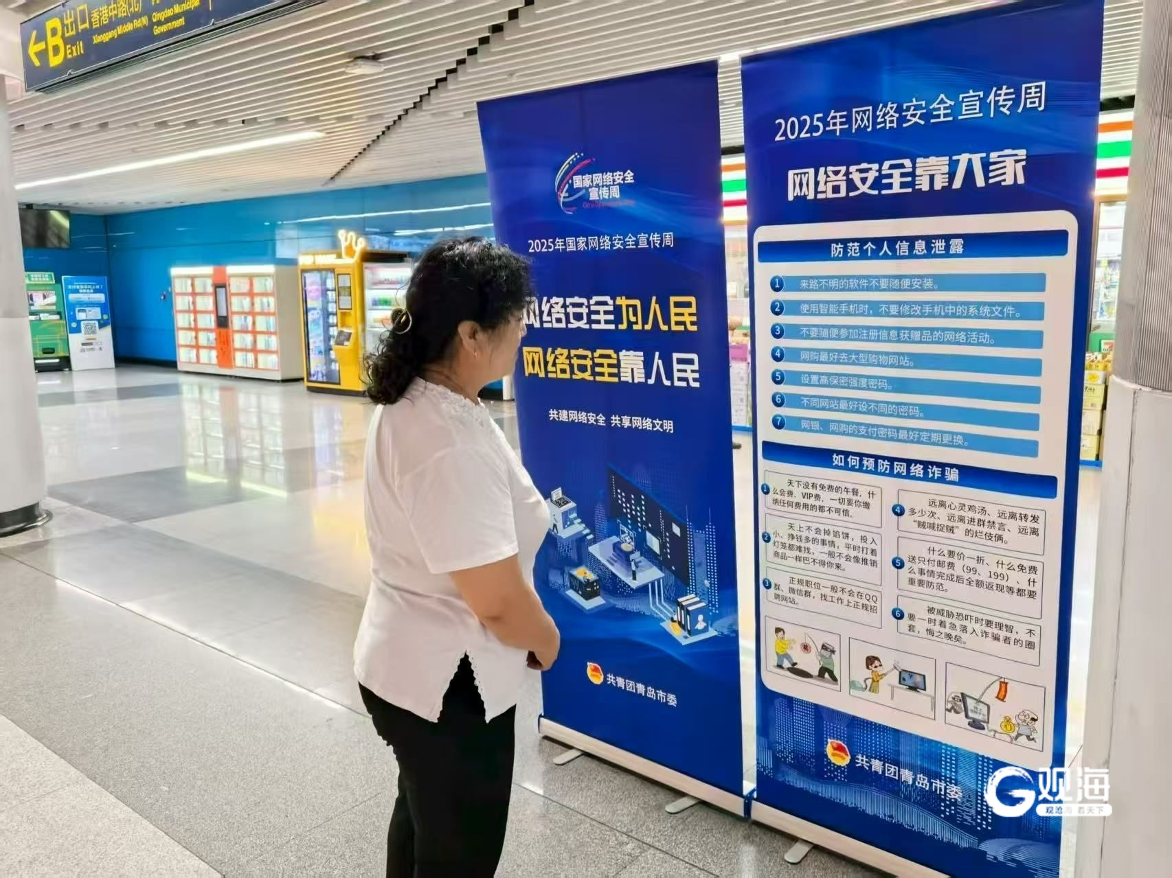 9月20日青少年日當(dāng)天,團(tuán)市委聯(lián)合地鐵集團(tuán)在五四廣場(chǎng)等客流量較大的站點(diǎn)開展線下宣傳活動(dòng)。地鐵站內(nèi),工作人員通過擺放宣傳展架、發(fā)放宣傳手冊(cè)等方式,向過往的青少年和乘客們普及網(wǎng)絡(luò)安全知識(shí)。