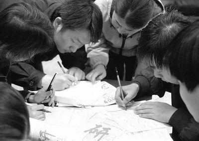 準(zhǔn)備考研的學(xué)生圍在一起填寫報名表。 新華社發(fā)