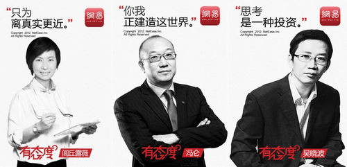 這是眾多大腕與移動(dòng)媒體的第一次親密接觸,源于網(wǎng)易發(fā)起了的一項(xiàng)名為“尋找有態(tài)度的人”的系列活動(dòng),該活動(dòng)旨在選擇社會(huì)不同領(lǐng)域的杰出人士擔(dān)任新聞客戶端封面人物,并將每個(gè)人物秉持的鮮明觀點(diǎn)、態(tài)度傳遞給公眾,借此引