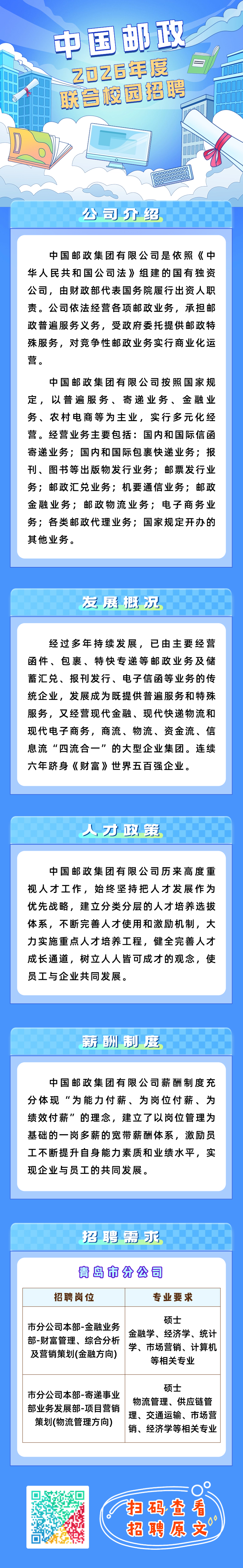 青島有崗!中國(guó)郵政2026年聯(lián)合校園招聘來(lái)啦